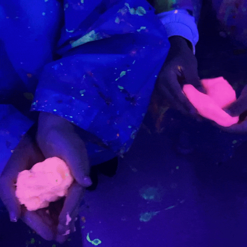Take the fun to the next level with our UV slime party upgrade. Under UV lights, the slimes come alive with bright neon colours, adding an extra wow factor to the experience.